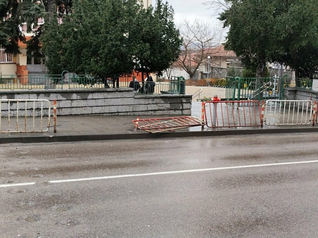 Металната преграда по улица „Съединение“, до входа на учебното заведение, беше отнесена в ранния следобед във вторник (24 февруари) от водач, опитал да избегне друг автомобил. За щастие, точно в този момент там не е имало ученици или други минувачи.